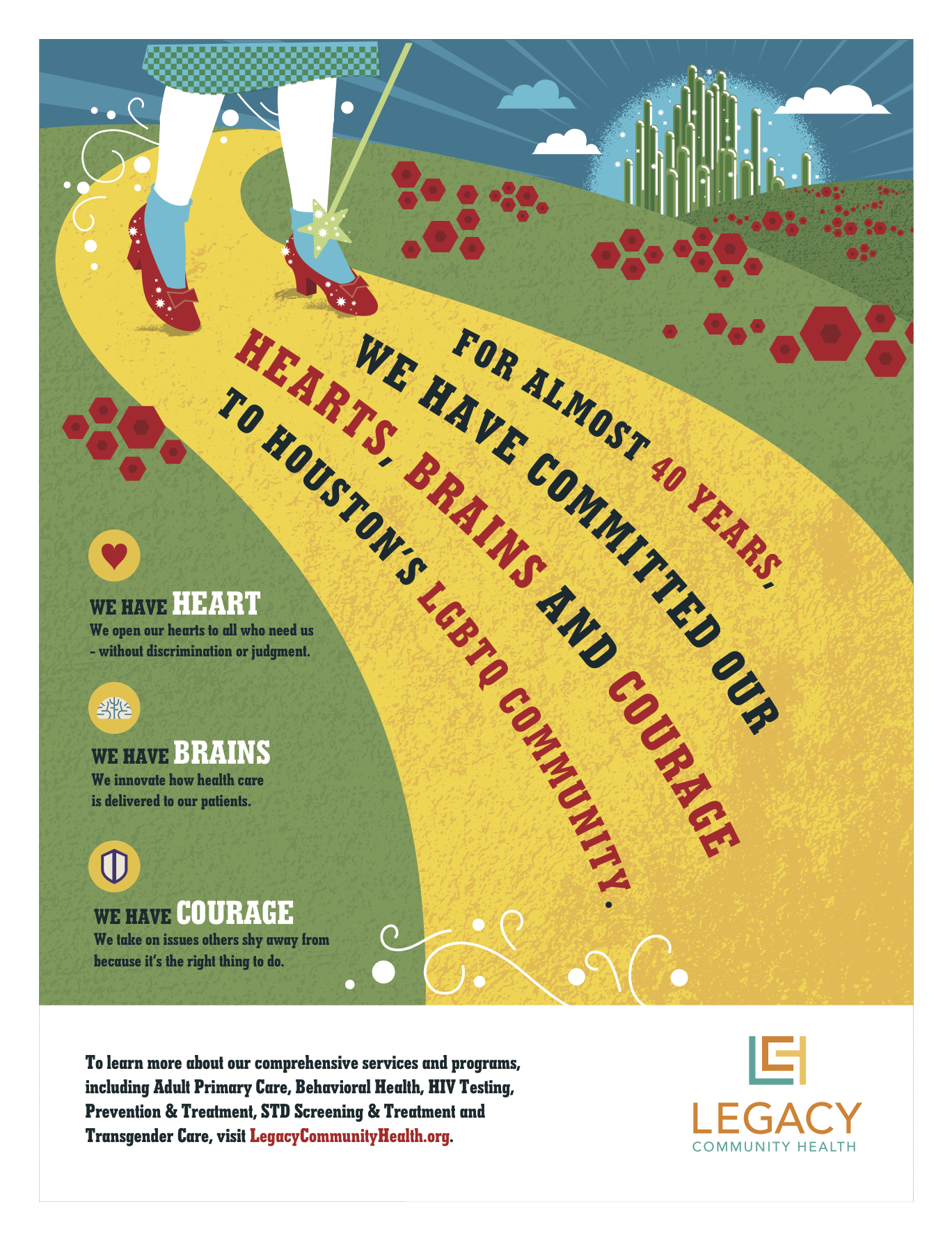 Here’s to Houston Pride being 40 years old! Come celebrate with us on Friday night at Rainbow on the Green. It’s sure to be a blast. Then march with us on Saturday at the parade. And be sure to check out our annual Pride lighting of our Legacy Montrose building.