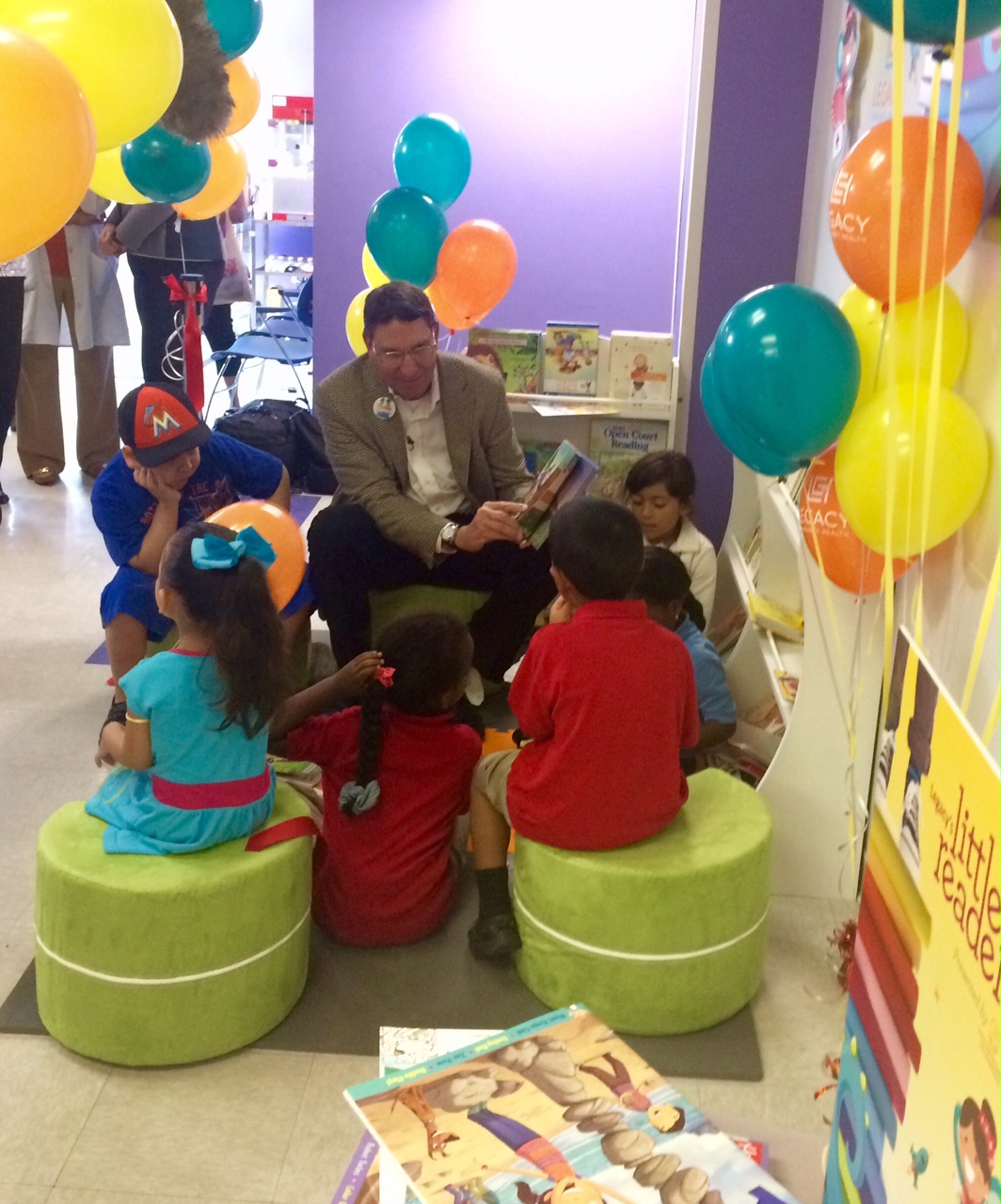 Photo – H-E-B Houston President Scott McClellan volunteers at a Little Readers Corner