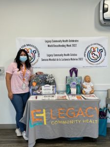 Legacy’s Lactation Consultant Yanett Hodgson, who has been with Legacy for 10 years, will join the Patient Education team on Wednesday, August 7th to share information about breastfeeding with patients and offer new breastfeeding education classes. At clinics providing OB/GYN and Pediatric services, there will be free breastfeeding incentives, educational materials, class scheduling, and chances to win prizes for patients who visit our table and sign up for classes.