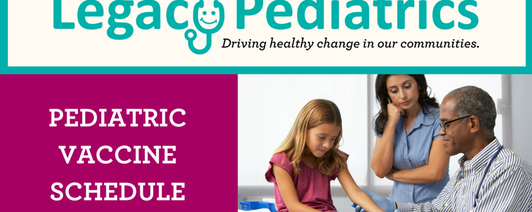 Vaccines matter more than you know. Print this vaccine schedule to keep up with your kid’s immunizations. Immunization Schedule for Children & Adolescents Aged 18 Years or Younger Call Legacy Community Health at 832-548-5000 to schedule your child’s vaccine or checkup.